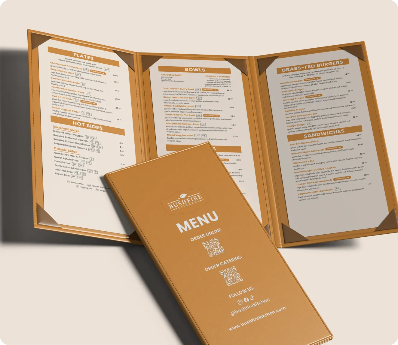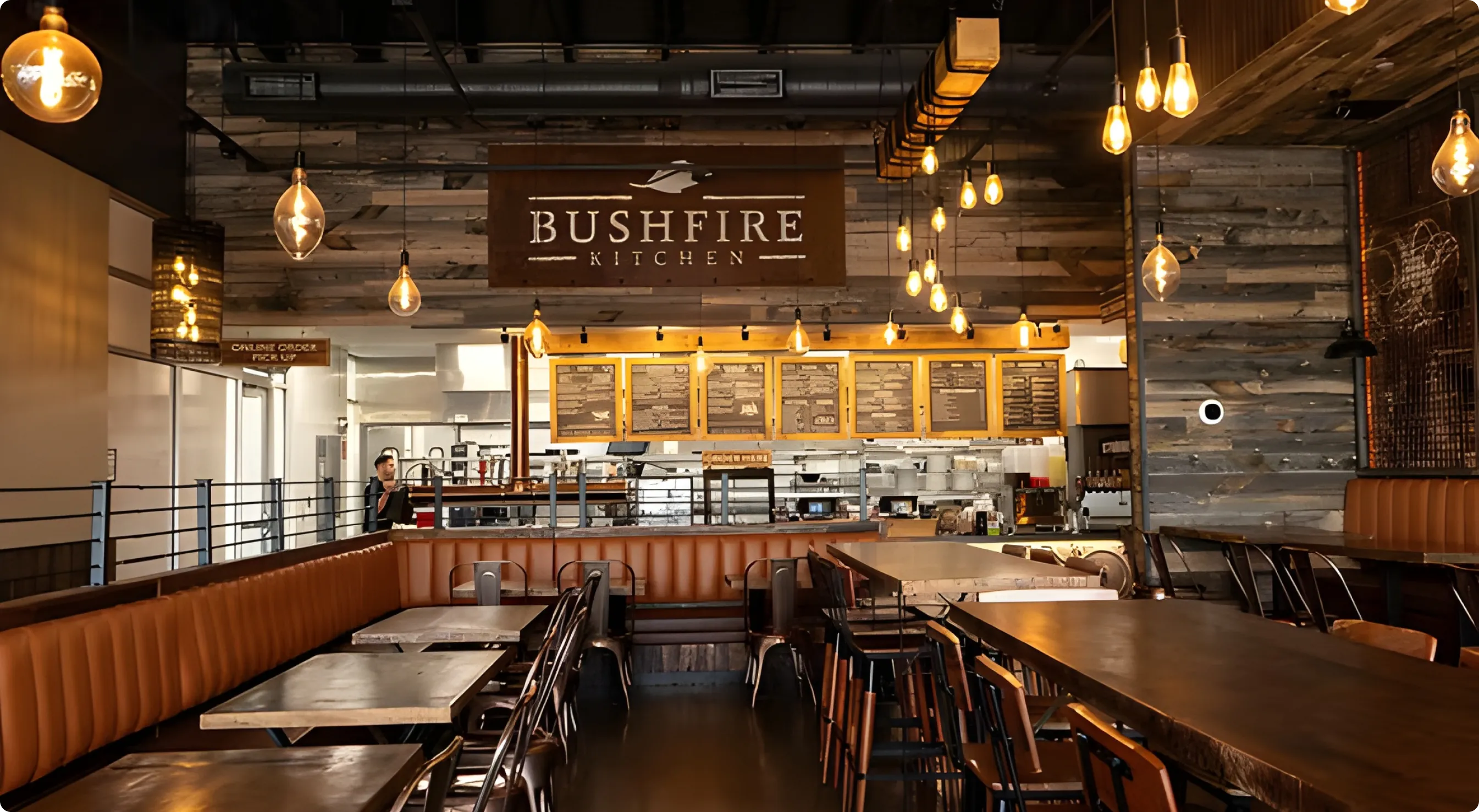Bushfire Kitchen approached Advist to enhance its brand presence across both physical and digital touchpoints. The goal was to create a more cohesive and engaging experience from how customers explore the menu to how they interact with the brand online while staying true to its fresh, fire-driven identity.